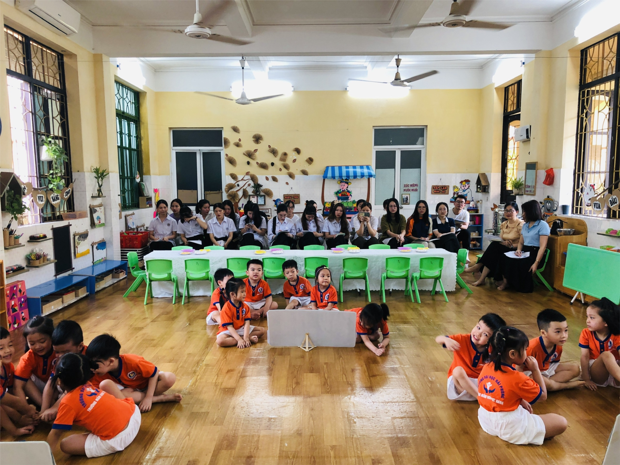 Tiếp nối, trao đổi phương pháp giáo dục trẻ của khoa GDMN&TH trường ĐHHP, trường MN Thực Hành có đội ngũ giáo viên tâm huyết, tận tình, có tay nghề chuyên môn nghiệp vụ đã minh hoạ 1 số phương pháp giáo dục trẻ cho các em sinh viên Đại học GDMN K22 của khoa GDTH&MN trường ĐHHP để các em sinh viên có thêm kiến thức, yêu nghề, mến trẻ tiếp tục xây dựng nghệ thuật ươm mầm, gieo hạt những chồi non xanh của đất nước. Hi vọng các em sinh viên vững tin trên con đường mình lựa chọn.